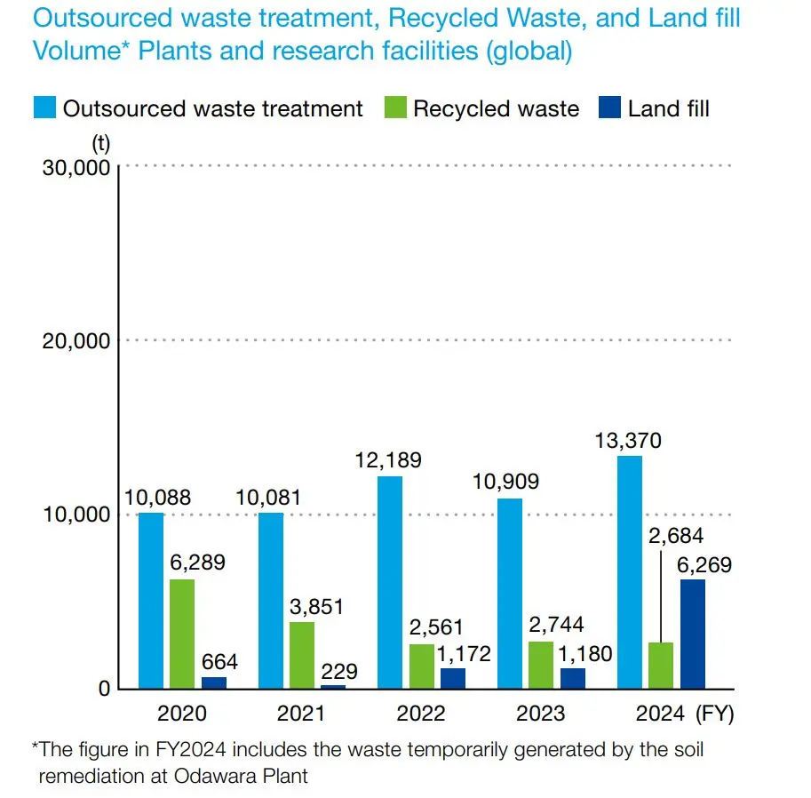 Based on the 5-Year Business Plan, our EHS Internal auditing at plants, research facilities, offices, and other operation sites focuses on verifying the level of compliance with the Waste Disposal Act as part of our efforts to prevent inappropriate waste disposal. Additionally each operation site regularly conducts on-site inspections for waste management contractors (in terms of their level of compliance with applicable laws and regulations, contract implementation, permits and licenses, actual waste disposal operations, etc.).
